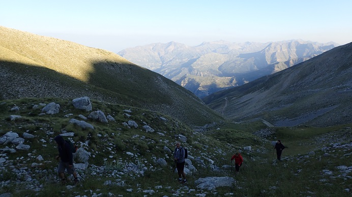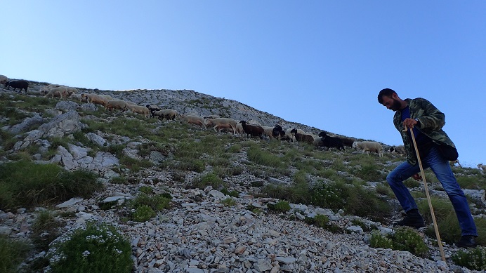 Η αγριάδα του αλπικού τοπίου με τα ασβεστολιθικά βράχια και οι μοναδικές εικόνες γύρω μας ήταν αφορμή για συχνές στάσεις για ανάσες και φωτογραφίες. Το κοπάδι του Μιχάλη μας συνόδευσε σχεδόν μέχρι την κορυφή, ήταν μια ανάβαση συνοδεία ποιμενικής μουσικής, με τα κουδουνίσματα και τα σκυλιά, μόνο η φλογέρα έλειπε...